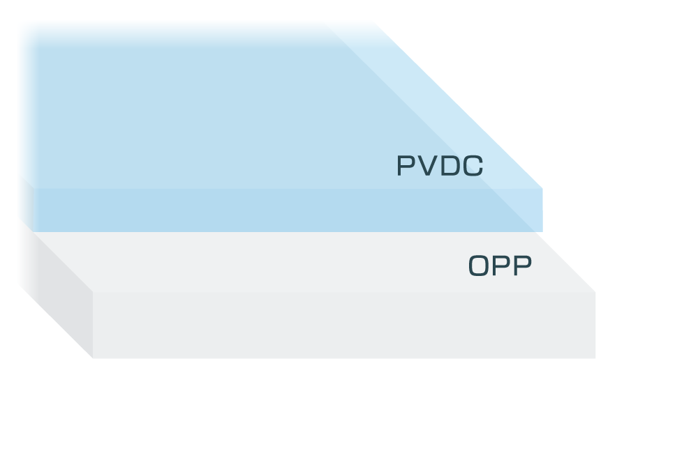 セネシKOP は OPPフィルムにPVDC(ポリ塩化ビニリデン)コートしたバリアフィルム です。