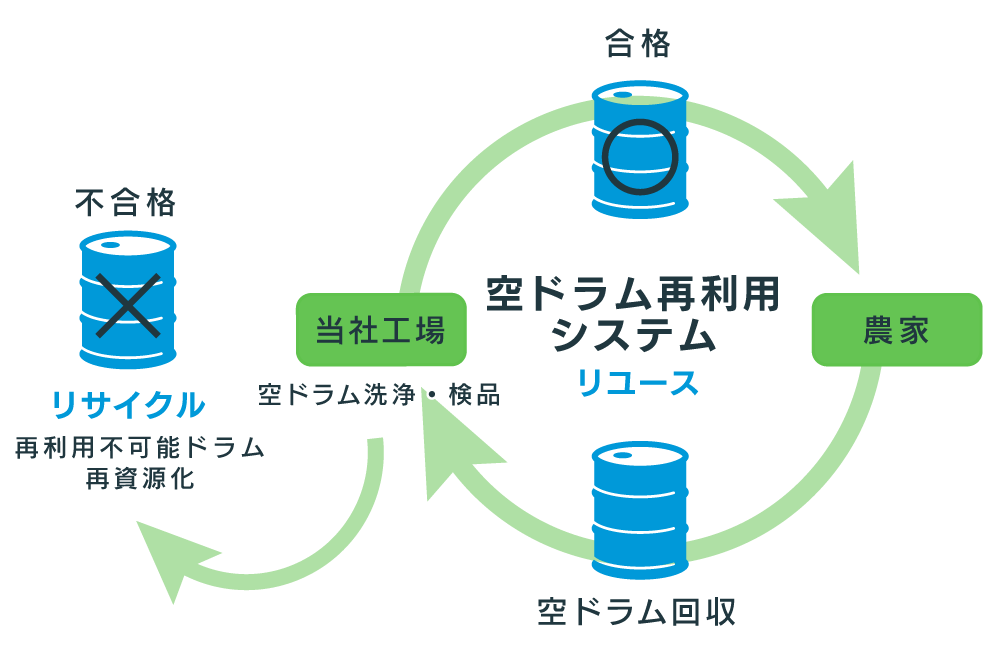 [ 空ドラムの回収 → 洗浄 → 再利用 ]