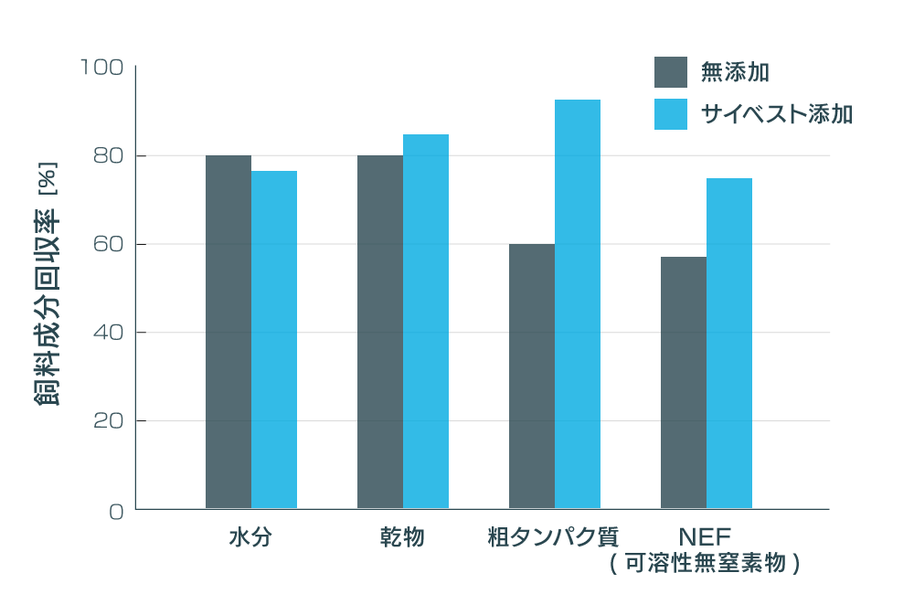 また、低温発酵のため無添加サイレージと比べ粗タンパク質,TDN,ベータカロチンなどの回収率が向上、