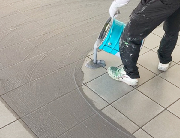 【CRパウダー】で既存タイルの上から施工できるため大幅な工期短縮と産業廃棄物削減となりました。
