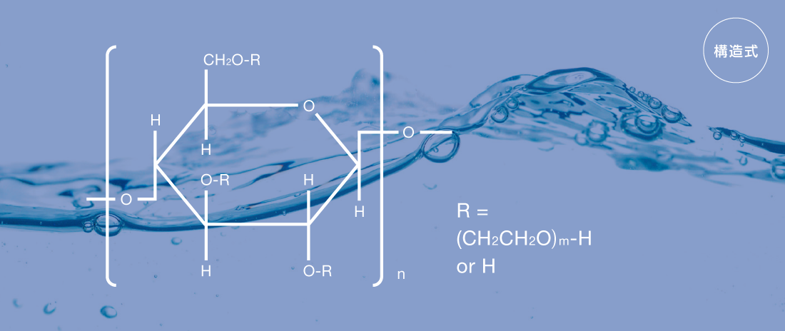・水に溶解して粘稠な無色透明の水溶液となり、増粘, 懸濁, 保護コロイドなどの機能を発揮します。