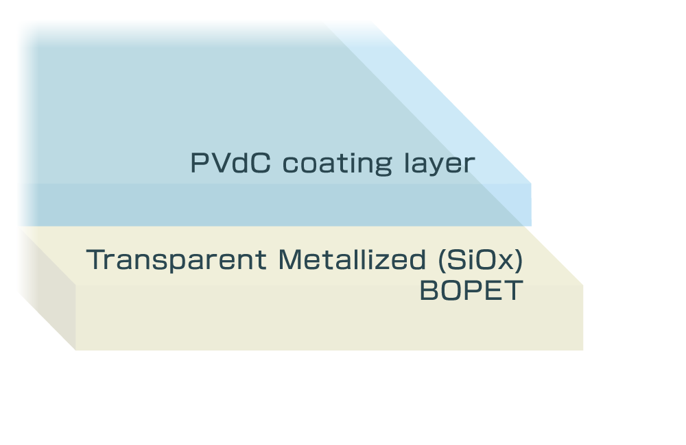 The structure is PVdC coating layer, SiOx metalized layer and then based-BOPET film.